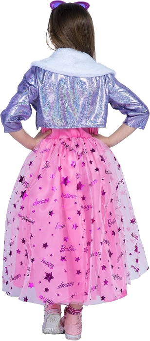Teljes Barbie Princess gyerekjelmez, amely hercegnői megjelenést biztosít farsangi bulikra, tematikus eseményekre vagy szerepjátékhoz. A szett egy rózsaszín, díszített ruhát és kiegészítőt (például fejdíszt) tartalmaz, így a gyermek kedvére bújhat egy mesés hercegnő szerepébe. A ruha könnyű, kényelmes anyagból készült, egyszerű fel- és levételt tesz lehetővé, és szabad mozgást biztosít viselés közben. A részletes kidolgozás és élénk színek vidám, ünnepi megjelenést adnak a kicsinek karneválokon, jelmezes programokon vagy játék közben.