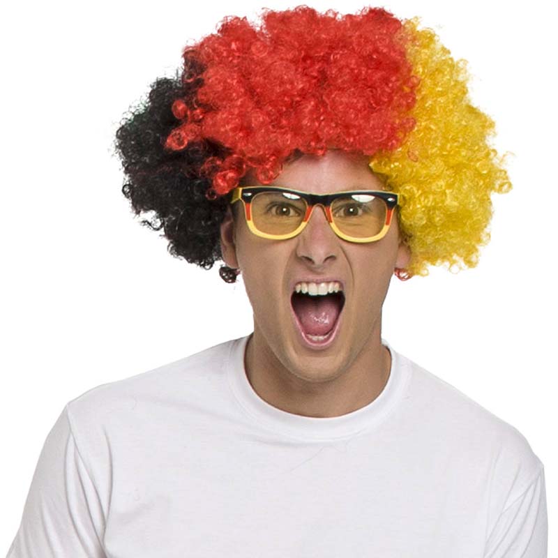 Szeretnél mindenkinél látványosabban szurkolni a kedvenc német focicsapatodnak? Akkor szerezd meg ezt a fekete-piros-sárga színű afroparókát és mutasd meg a barátaidnak, milyen is egy igazi focidrukker! Csak kapd fel a legkényelmesebb ruhádat, vedd fel hozzá ezt a parókát és természetesen fesd ki az arcodat a csapat színeivel! Használd fel a parókát a farsangi buliban is és legyél ott is egy szurkoló, vagy kombináld egy másik jelmezzel és legyél te a legkreatívabb résztvevő a jelmezversenyen! A kép illusztráció, a paróka nem tartalmaz minden kiegészítőt!