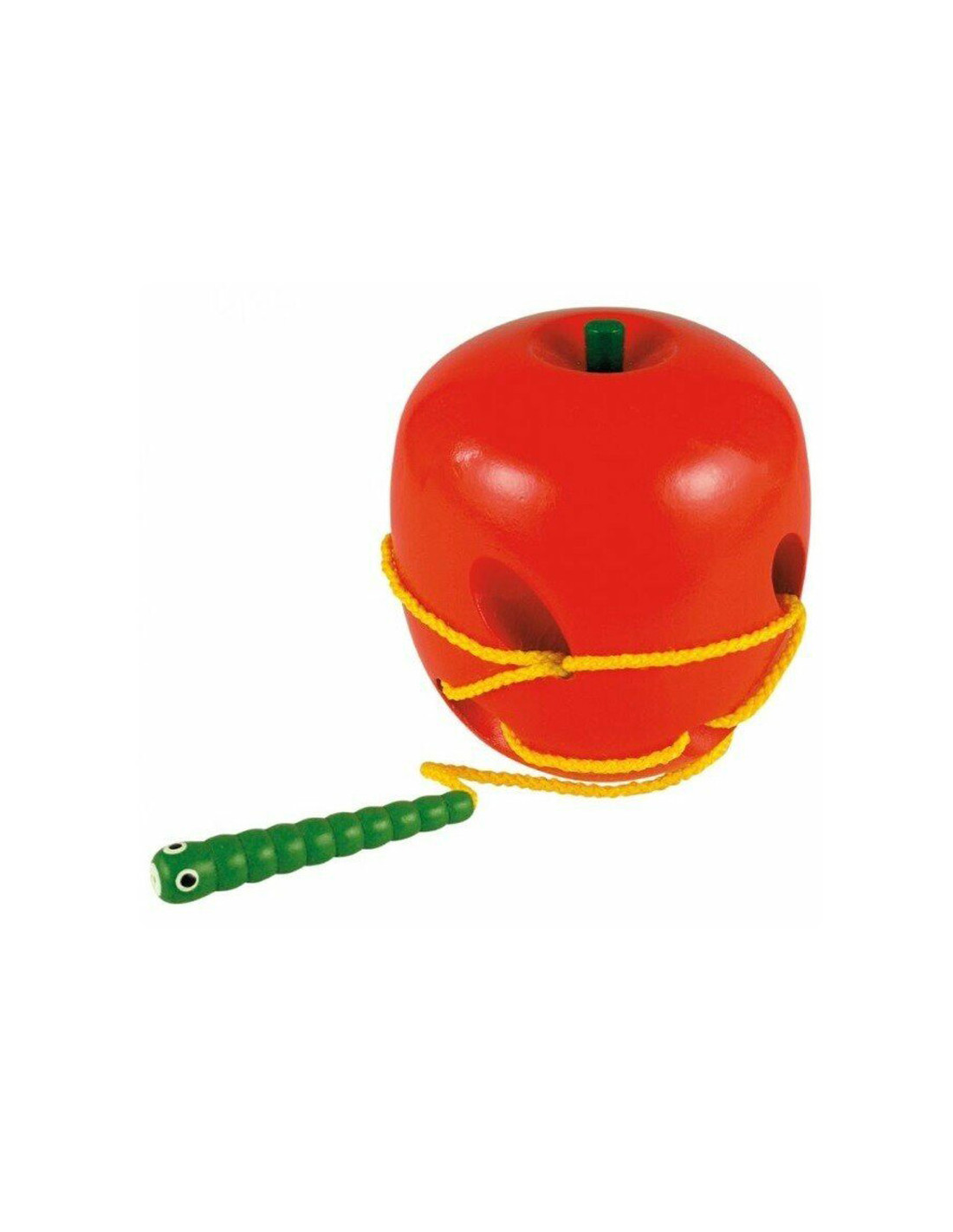 Segíts ennek a hosszú, zöld kukacnak átfúrni az almát! Vezesd a kukacot addig az alma lyukacsaiban, míg elfogy a zsinór! Alma fűzőcske kukaccal, fából készítve, kb. 8 cm-es méretben a Woody-tól!