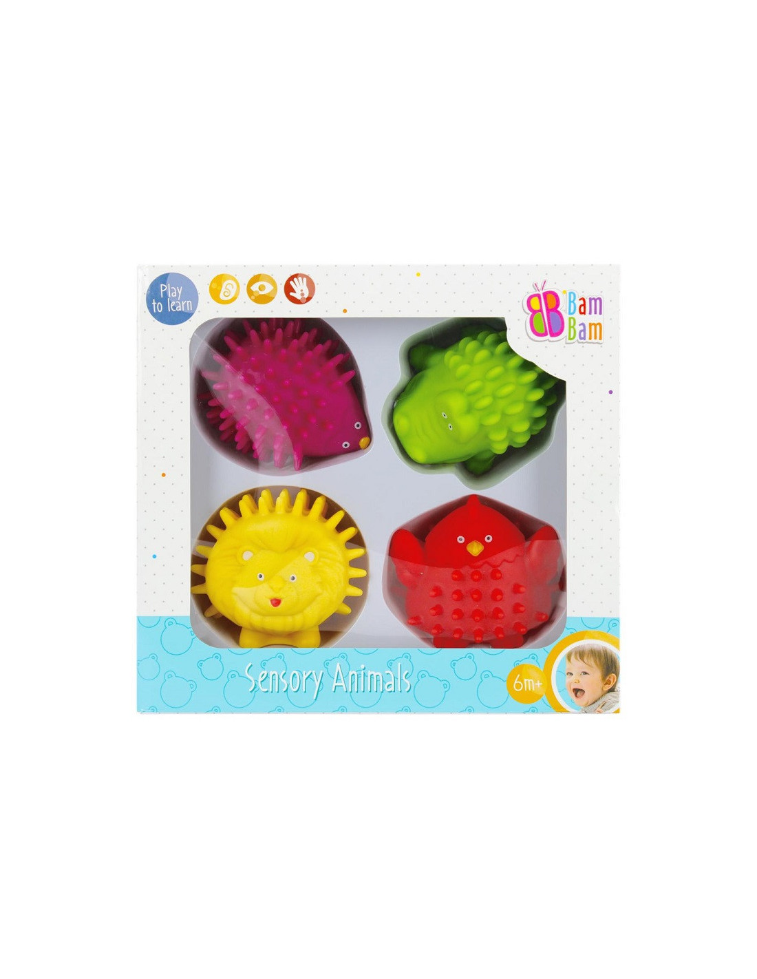 A BamBam most egy cuki újdonságot hozott el a babádnak! Ezt a 4 darabos, szenzoros kisállatok szettet első látásra imádni fogja, hiszen egy oroszlán, egy sündisznó, egy víziló és egy csirke figura fog élménydús játékot nyújtani a kicsinek, miközben különleges formáikkal segítik a tapintás és a kézügyesség fejlődését.
