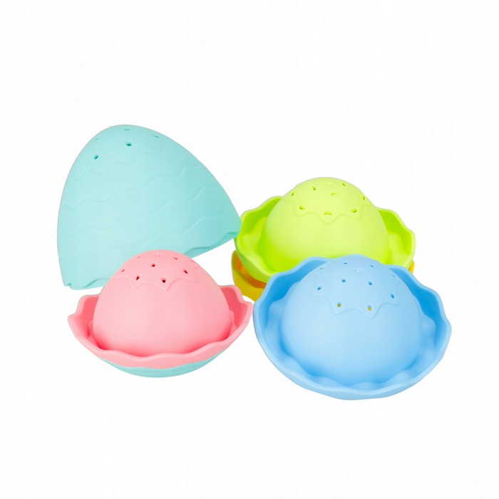 Hét egymáshoz illő bögre � amelyek egymásba helyezhetők, vagy akár össze is illeszthetők, így létrehozva a tojást. A színes bögrék végtelen számú játéklehetőséget biztosítanak a gyermeknek! A bögrék beállításával, összecsukásával és összekapcsolásával a gyermek megismeri a forma- és méretkoncepciókat, és megtanulja a válogatást és az illeszkedést!