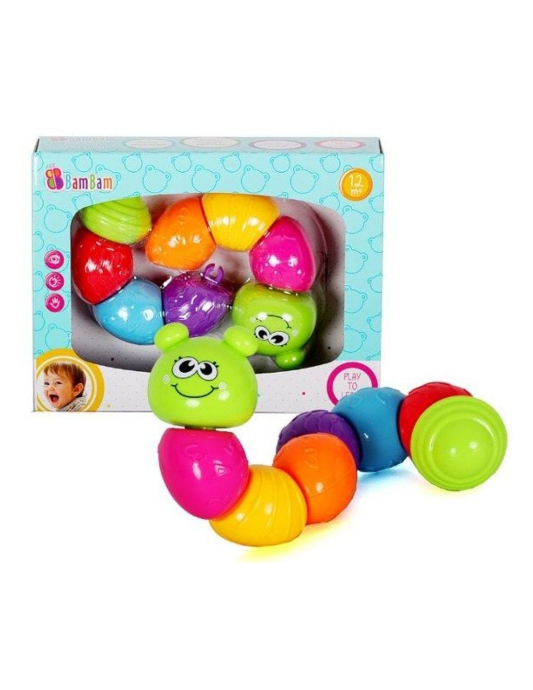 A BamBam vicces színes hernyója szuper társ lehet babádnak a hétköznapokban. A hernyó egyes részei külön szedhetőek, majd összeépíthetők, így fejlesztik a gyerekek logikai gondolkodását és kézügyességét.