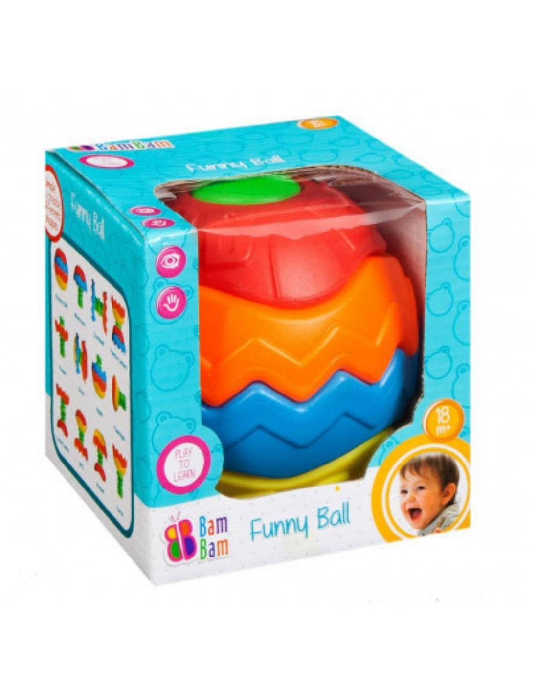 A Bam Bam vicces labdája igazán szórakoztató és biztonságos játék a legkisebbek számára is! A labda különböző felülete miatt gurulás közben gyakran irányt vált, elemeire szedve pedig különféle formák építhetők belőle!