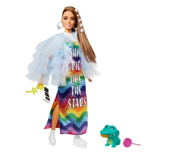 Barbie Extra babák merész divatot, élénk színeket és véleményt képviselnek! Minden BarbieR baba egyedi, játékos és túlzott stílussal rendelkezik. Háziállataik különlegesek, aranyosak és sok személyiséggel rendelkeznek! A BarbieR Extra lehetővé teszi a gyerekek számára, hogy felfedezzék az önkifejezést a stíluson keresztül, és magával ragadó divat- és stílusélményt nyújt a mozgatható babákkal. A BarbieR Extra a divatos szórakozást csillogással, gumicukrokkal, hangulatjelekkel és jellegzetes hajjal képviseli, és EXTRA hangulatot teremt, bárhová is megy. Mindegyik külön kapható, a készlet erejéig. A babák nem állnak meg magukban. Ez a készlet egy szivárványos ruhás szőke babát és egy krokodil háziállatot tartalmaz.