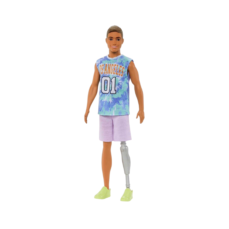 Ez egy Mattel Barbie Fashionistas kollekcióba tartozó Ken fiú baba prosztetikus lábbal (lábprotézissel). A baba barna hajú, Los Angeles mintás mezben, lila rövidnadrágban és sportos cipőben érkezik, és mozgatható végtagokkal rendelkezik. A lábprotézis reálisabbá teszi a játékot és a sokszínűséget tükrözi, miközben fantáziadús szerepjátékra alkalmas. A terméket 3 éves kortól ajánlják.