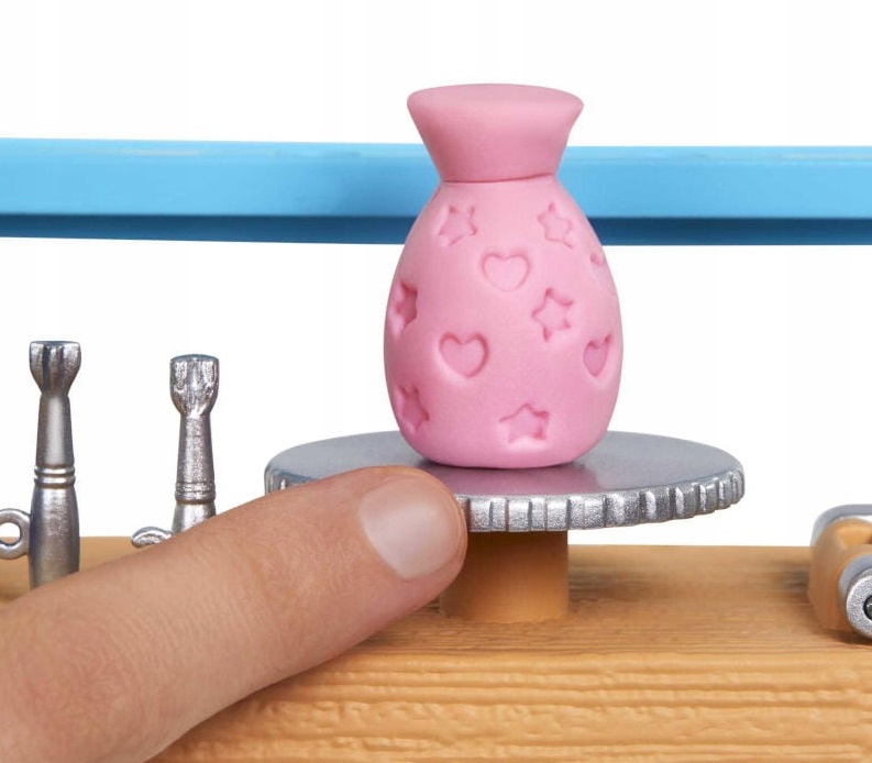 Megérkezett Barbie, a híres játékbaba, aki hiába múlt már el 60 éves, még mindig naprakész és ismeri a trendeket! Most egy Self-Care műtermet nyitott meg, ahol a kedvenc kutyusa után az állványon lévő unikornist, vázát vagy dinnyét szeretné lefesteni. Lesd el tőle, hogy hogyan használja az ecsetet, utánozd a mozdulatait és akkor belőled is igazi művész lesz! Ráadásul képzeld, a festés mellett tud még vázákat is készíteni! Segíts neki eldönteni, hogy a lila vagy a rózsaszín gyurmát használja, vegyél ki egy keveset a vödörből és nyomd a gyurmát az asztalán lévő formanyomóba! Ezután már csak pár csillag és szívecske hiányzik a vázára, szóval tedd a vázát forgó korongra és nyomkodd az oldalára a mintákat! Ugye, milyen jól néz ki? Egy több, mint 25 darabos Self-Care műterem szettel vár rád Barbie, ha elmúltál három éves. A szett kétféle gyurmát is tartalmaz.