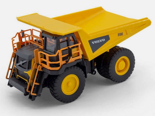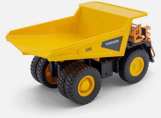 A Bburago Volvo R100E 1:60 egy 1:60 méretarányú, részletgazdag fém és műanyag kivitelű modell dömper, amely a Volvo R100E munka- és építőgép mintájára készült. A jellegzetes sárga színű modell kb. 15-17 cm hosszú, forgó kerekekkel, gumiabroncsokkal és mozgatható platóval rendelkezik, a karosszéria pedig öntött fémrészek és precíz plasztik alkatrészek kombinációjából áll. A kidolgozott részletek és a tartós anyaghasználat miatt alkalmas gyűjtésre vagy kiállításra, de játékra is megfelel.