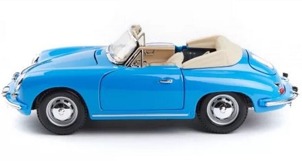 A Bburago Porsche 356B Cabrio 1:18 egy részletgazdag fém modellautó, amely a klasszikus Porsche 356B kabriót idézi meg 1:18-as méretarányban. A modell öntött fém karosszériával és műanyag részletekkel készült, nyitható ajtókkal, mozgatható kerekekkel és kidolgozott belső térrel, így egyszerre játéknak és gyűjthető darabnak is megfelel. Ideális választás autómodell-rajongóknak, gyűjtőknek vagy klasszikus veterán autók kedvelőinek, és 3 éves kortól ajánlott.