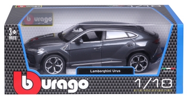 Bburago Lamborghini Urus 1:18 részletgazdag 1:18 méretarányú fém modellautó híres olasz szupersport-SUV-ról, a Lamborghini Urusról. A modell nyitható ajtókkal, motorháztetővel és csomagtartóval rendelkezik, így még élethűbb megjelenést kínál, és a belső tér, valamint a motor részletei is kidolgozottak. A kerekek kormányzással mozoghatók, ami fejleszti a játékélményt vagy gyűjthető darabbá teszi a polcon is. Mérete kb. 25 cm hosszú a valós járműhöz képest 1:18 arányban készült modellben. Ajánlott 3 éves kortól és ideális választás autó- és modellrajongóknak egyaránt.