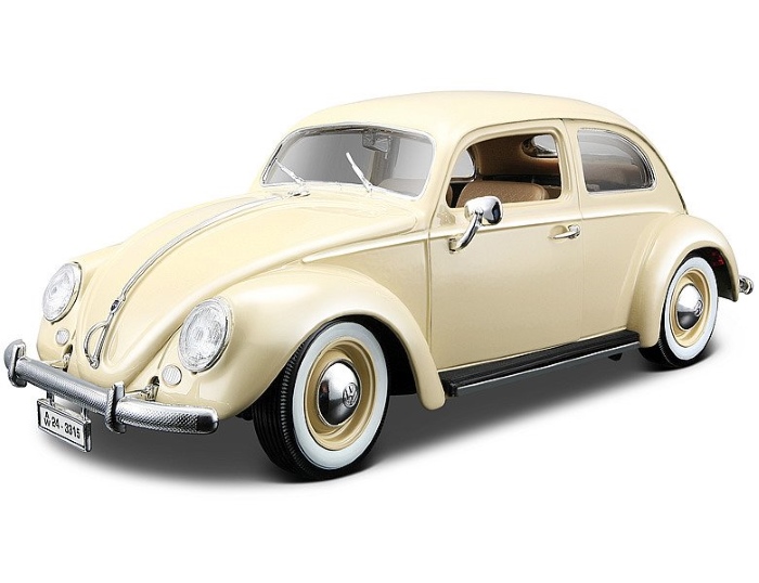 Bburago Volkswagen Beetle 1955 1:18 egy részletgazdag, 1:18 méretarányú fém die-cast modellautó, amely a klasszikus 1955-ös Volkswagen VW Kafer (Beetle) kabrió autót idézi meg. A modell öntött fém karosszériával és részletes műanyag elemekkel készült, így stabil és tartós kivitelű, miközben hűen tükrözi az ikonikus bogárhátú formát. A nyitható ajtók, motorháztető és csomagtartó lehetővé teszik a belső részletek felfedezését, és a működő kerekekkel akár játékra is alkalmas, miközben gyűjthető darabként is kitűnő választás. A modell kb. 23 cm hosszú, és autómodell-rajongóknak, gyűjtőknek vagy klasszikus veteránok kedvelőinek egyaránt ideális.