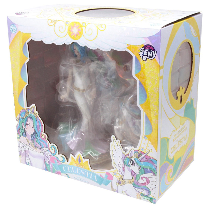 A Bishoujo sorozatban Princess Celestia egy elegáns, gyűjtői kivitelű szoborként jelenik meg. A figura 1:7 méretarányú, kb. 23,5 cm magas, szépen kidolgozott részletekkel és igényes festéssel, stabil talpon áll, így vitrinben is kifejezetten mutatós. A dizájn Shunya Yamashita illusztrációja alapján készült, a csomagolás pedig gyűjtőbarát, ablakos doboz.