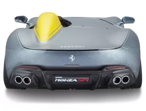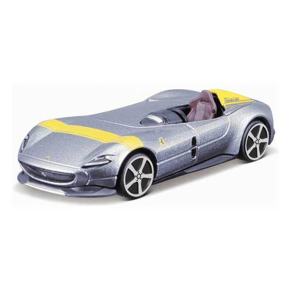 A Bburago Ferrari Monza SP1 1:18 Silver Metallic egy 1:18 méretarányú, részletgazdag kidolgozású fém modellautó, amely a különleges kialakítású Ferrari Monza SP1 sportkocsit mintázza. Az öntött fém karosszéria ezüst metál fényezést kapott, a modell precízen kialakított műanyag részletekkel, élethű belső térrel, részletes műszerfallal és kidolgozott külső elemekkel készül. A gumiabroncsokkal szerelt kerekek és a nyitható elemek tovább növelik a realizmust, így a modell esztétikus és igényes darab gyűjtők és Ferrari-rajongók számára.