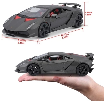 A Bburago Plus Lamborghini Sesto Elemento 1:24 Black egy 1:24 méretarányú, részletgazdag kidolgozású fém autómodell, amely a Lamborghini Sesto Elemento fekete fényezésű változatát ábrázolja. A modell öntött fém karosszériából és precíz műanyag részletekből áll, kidolgozott külső elemekkel, lámpákkal és belső térrel készül. Az ajtók és a motorháztető nyithatók, a kormánykerék pedig a kerekek irányítását teszi lehetővé, így élethű megjelenést biztosít gyűjtők és autórajongók számára.