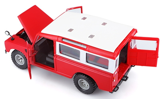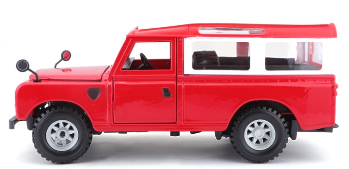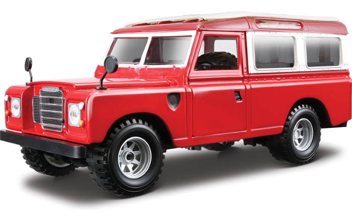 Bburago Land Rover Series II 1:24 egy 1:24 méretarányú fém modellautó, amely a klasszikus Land Rover Series II terepjárót idézi meg élénk piros színben. A részletgazdag kidolgozásnak köszönhetően az autó nyitható ajtókkal és motorháztetővel, valamint gumikerekekkel rendelkezik, ami élvezetes játékélményt vagy gyűjtői darabot biztosít. A modell kb. 17 cm hosszú, strapabíró zinko-alumínium karosszériával készült, és 3 éves kortól ajánlott klasszikus autós játékokhoz vagy gyűjteménybe.
