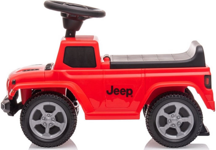A Carero Jeep Rubicon Gladiator Milly Mally Red egy élénk piros gyermek ülő-járókocsi, amely egy terepjáró stílusú Jeep modellt idéz. Strapabíró műanyagból készült, széles, stabil alvázával és könnyen guruló kerekekkel a kisgyermek biztonságosan tolhatja, miközben fejlődik az egyensúly és a koordináció. A kormány fogantyúként és irányítóként szolgál, gyakran interaktív hangokkal, tovább növelve a játékélményt.