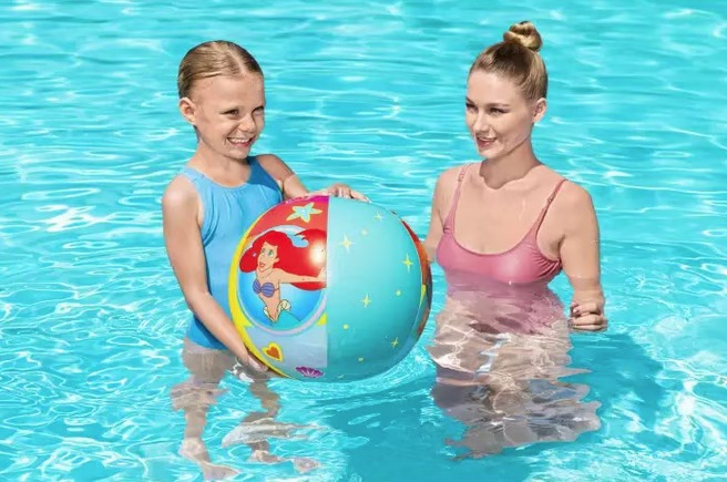 A Disney hercegnő mintás Bestway felfújható strandlabda tökéletes választás a nyári játékokhoz, látványos grafikája igazi mesehangulatot teremt a strandon, kertben vagy medencében, miközben könnyű és biztonságos szórakozást nyújt a gyermekek számára; strapabíró, előre tesztelt PVC (vinyl) anyagból készült, biztonsági szeleppel ellátva a gyors felfújás és leeresztés érdekében, így praktikus és helytakarékos megoldás utazáshoz is; átmérője 51 cm, amely ideális méret a kényelmes és vidám labdajátékokhoz kicsiknek és nagyobb gyerekeknek egyaránt.