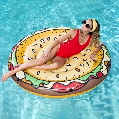 Ez a Burger matrac egy játékos, hamburger formájú felfújható vízi matrac, amely vidám megjelenésével igazi nyári hangulatot teremt a medencében vagy strandolás közben, és garantáltan feldobja a pihenést vagy a közös vízi mókát. A 1,58 m-es átmérő kényelmes fekvőfelületet biztosít, így ideális lazításhoz, lebegéshez vagy napozáshoz gyerekeknek és felnőtteknek egyaránt. Tartós, erős PVC (vinil) anyagból készült, amely jól bírja a vízi használatot, miközben stabil tartást és megbízható lebegést nyújt. Körben kapaszkodókötéllel ellátott kialakítása növeli a biztonságérzetet és a kényelmet használat közben. Korosztály: 6 éves kortól ajánlott, szülői felügyelet mellett ideális választás nyári strandoláshoz és medencés pihenéshez.
