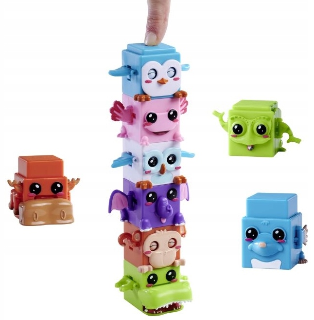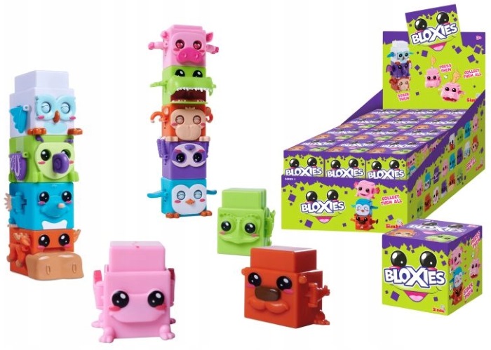 Ez egy Simba Bloxies 1. széria meglepetés figura egy gyűjthető mini játékmacska/kocka-állatka egy véletlenszerűen választott darabban, amely a kollekció 18 különböző állatfigurájának egyike lehet. A figurák kocka formájúak, egymásra rakhatók, és mókás mozgást végeznek, ha a tetejüket megnyomják (például mozgatják a végtagjaikat, pislognak vagy kidugják a nyelvüket), így szórakoztató, interaktív játékélményt nyújtanak. A csomag 1 db véletlenszerű Bloxies figurát tartalmaz, mérete kb. 4,5 cm, és 3 éves kortól ajánlott.