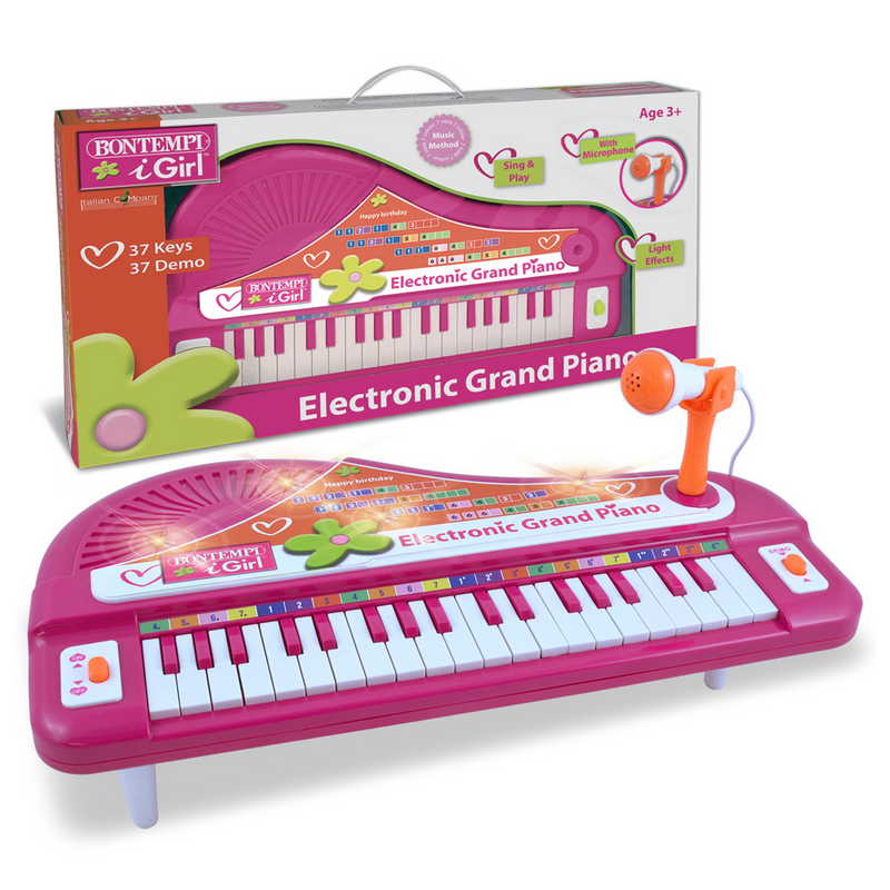 Elektronikus zongora mikrofonnal - 37 billentyű - Fényeffektek - 37 demódal - Levehető lábak - 3 db R6/AA 1,5V-os elem (nem tartozék) - 445x250x230 mm
