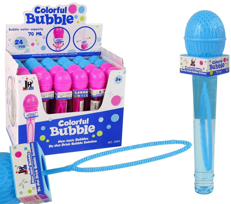 Buborékfújó mikrofon kék színben, mikrofon alakú kialakítással. Szórakoztató játék, amely egyszerre engedi kibontakozni a kreativitást és készít lebegő, színes buborékokat. Ideális szabadtéri játékhoz, bulikhoz vagy baráti összejövetelekhez, könnyen használható és vidám élményt nyújt minden gyermek számára.