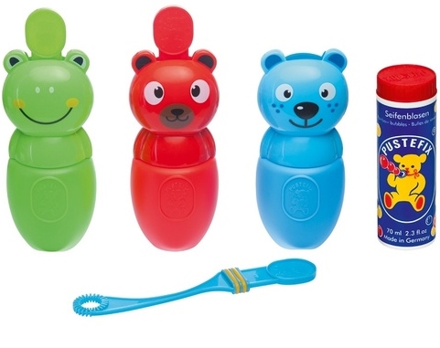 Szappanbuborékok, utántöltő folyadékok és nagyszerű játékkészletek, ez a Pustefix! Vidám időtöltés minden korosztály számára. A Pustefix Mini-Mix buborékfújó szett vidám szabadtéri játék, amely több különböző formájú buborékfújó karikával teszi még szórakoztatóbbá a buborékkészítést. A készlet tartalmaz egy 42 ml-es buborékfolyadékot, egy kis tálkát a folyadékhoz, valamint különböző formájú buborékfújó karikákat (például kör, szív vagy csillag), amelyekkel változatos buborékok készíthetők. A kompakt csomagolásnak köszönhetően könnyen hordozható, így ideális kertben, játszótéren vagy kirándulások során. A játék kb. 18,5 x 4,6 x 10,7 cm méretű csomagban érkezik, és általában 4 éves kortól ajánlott. A Bubble Friends egy vidám buborékfújó játék, amely a buborékfújást egyszerűvé és cseppmentessé teszi gyermekek számára. Rendelés előtt érdeklődjön a típusról.