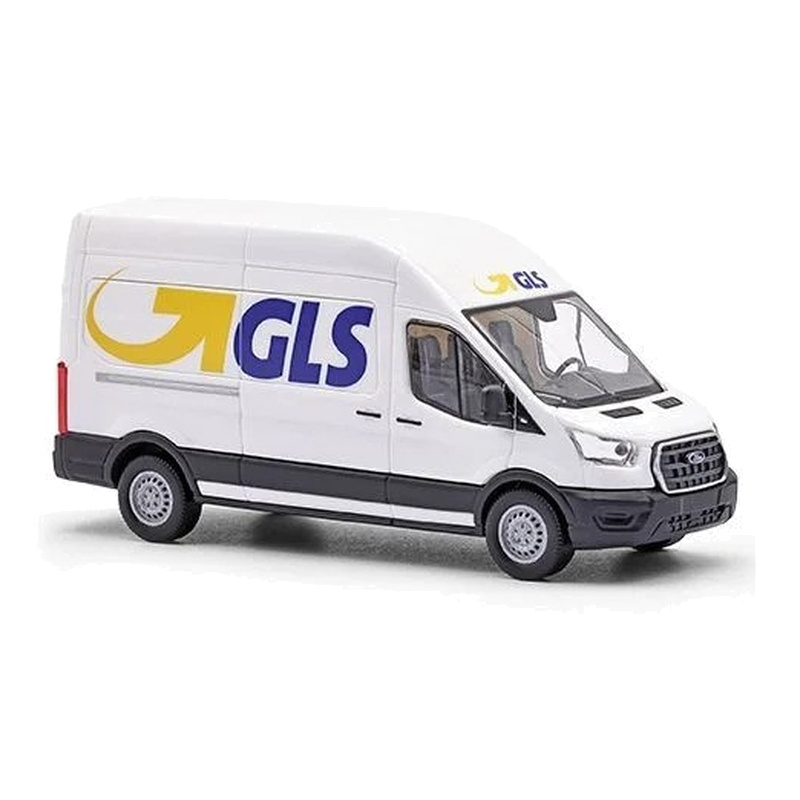 Modern Ford Transit furgon GLS dekorral, tökéletes logisztikai/depós jelenetekhez vagy városi forgalomba. Ha raktár,üzlet,lakóövezet témád van, ez az egyik legéletszerűbb mindennapi jármű a terepasztalon.