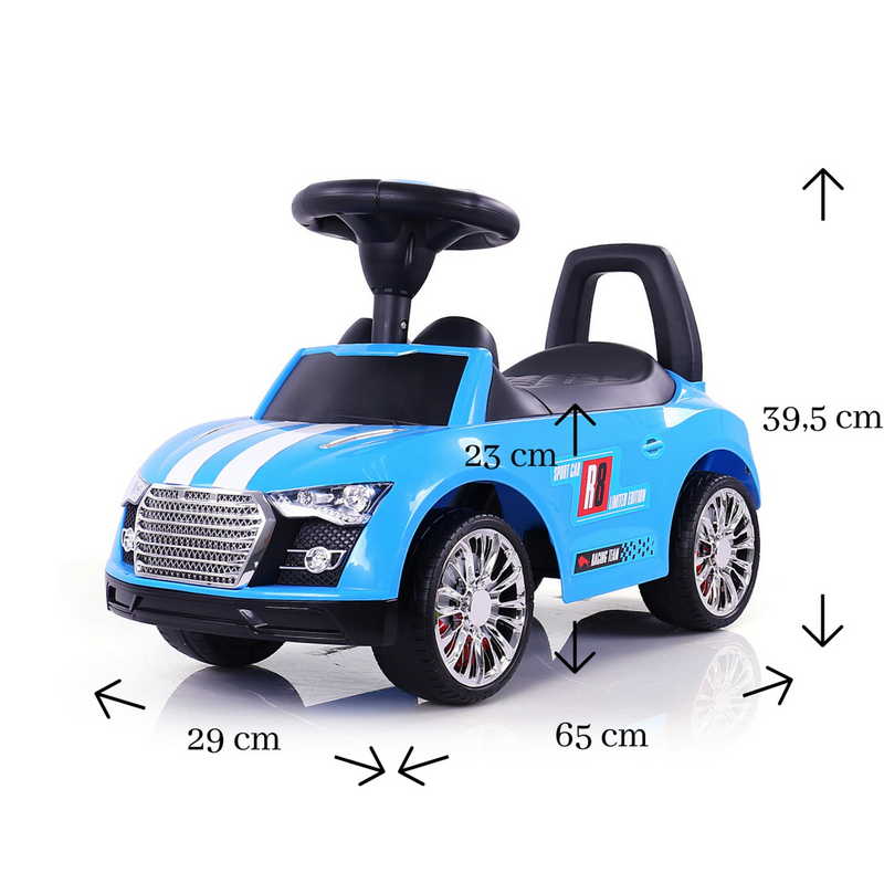 Ez egy igazi versenyautó, kormányzott első kerekekkel, kormánykerékkel, amelyen zenelejátszó és kürt található, valamint a felborulást megakadályozó vázzal. Kiváló vezetési élményt nyújt a gyermeknek, fejleszti az egyensúlyérzékét és a motorikus képességeit. Az autó könnyű műanyag szerkezetű és ergonómikus formájú, ami biztonságos játékot biztosít a gyermeknek. A fizikai aktivitáson keresztül történő szórakozás remek módja annak, hogy elősegítsük gyermekeink normális fejlődését.