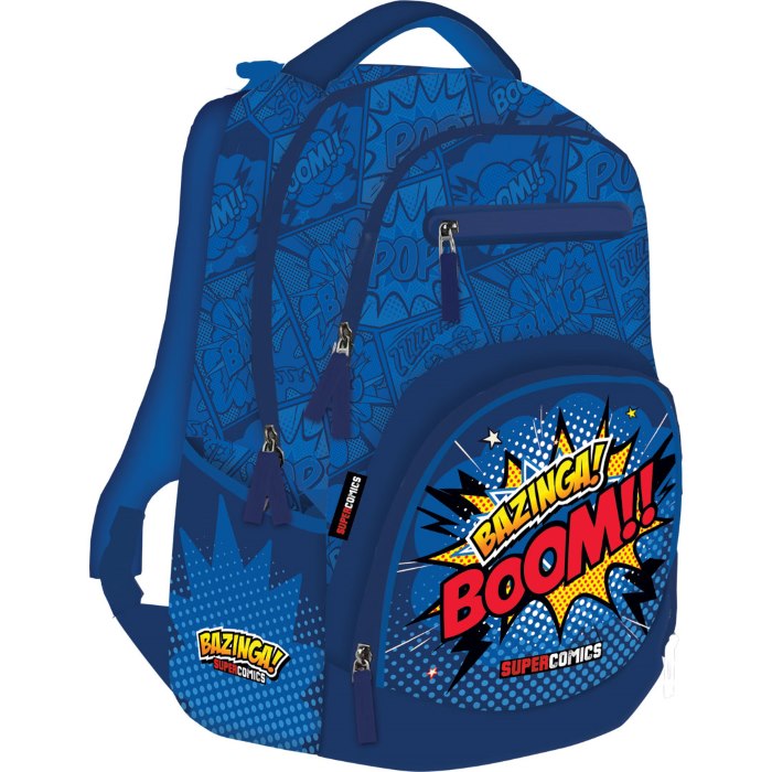 A Lizzy Képregényes hátizsák vidám és stílusos választás mindennapokra. Kék színe és az első zseben található "Bazing Boom!!" képregény stílusú felirat egyedi megjelenést biztosít. Tágas belső kialakítása és sok zsebe segíti a rendezett pakolást. Mérete: 43 x 30 x 21,5 cm.
