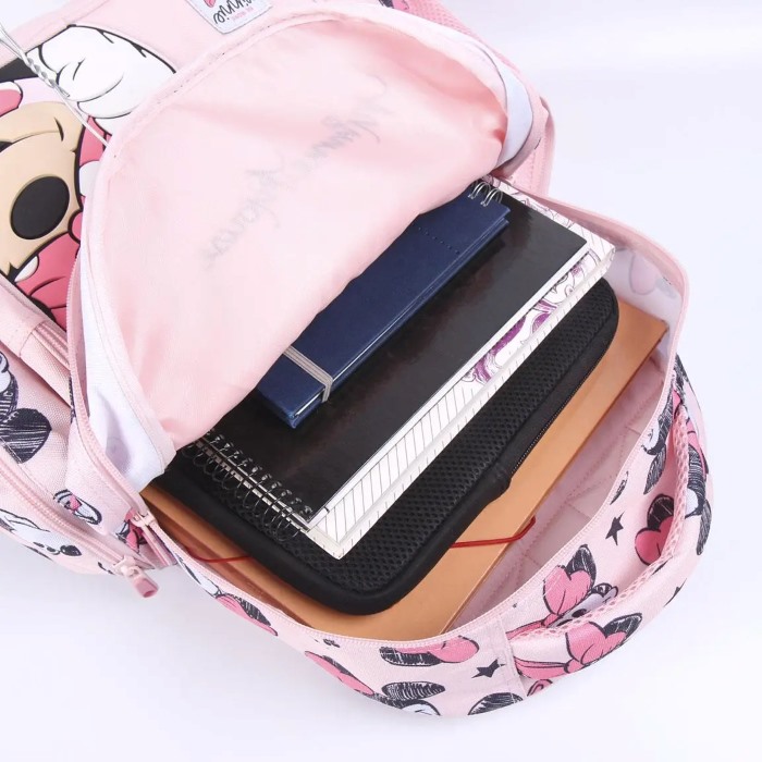 Ha egy igazán csajos iskolatáskával kezdenéd a tanévet, Minnie egér szívesen csatlakozik hozzád! A Cerda Minnie iskolatáska állítható vállpántokkal és kényelmes hátrésszel rendelkezik, belső részében egy nagy cipzáras rekesz található, elöl pedig egy nagyobb és egy kisebb cipzáras rekesz segíti a rendszerezést. Az egyik oldalon hálós, a másikon cipzáras zseb biztosítja a kiegészítők praktikus tárolását. Mérete 32 x 42 x 15 cm, kisiskolás gyermekeknek ideális.
