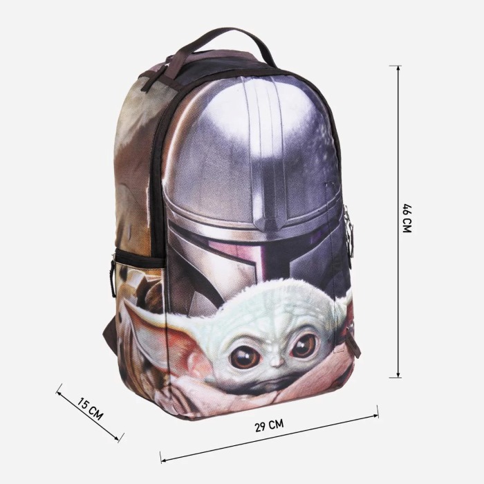 Remek hátizsák mindennapi használatra, amelyet a Star Wars univerzum népszerű Mandalóri sorozata ihletett. Praktikus kialakításának köszönhetően elegendő tárolóhelyet biztosít az iskolai felszerelések és személyes tárgyak számára. Strapabíró poliészter anyagból készült, mérete körülbelül 30 x 44 x 12 cm.