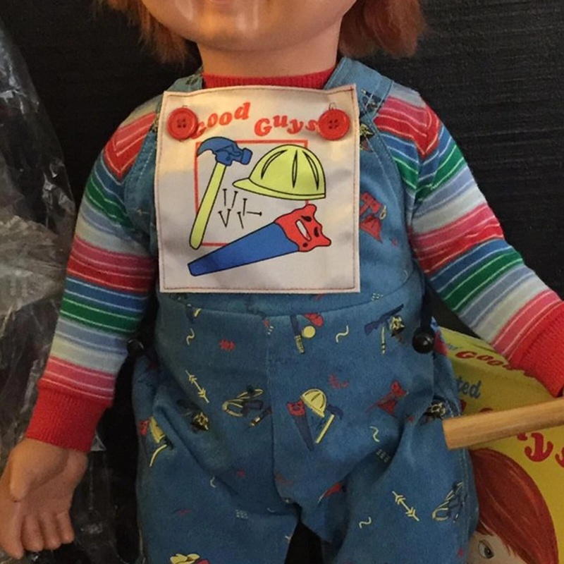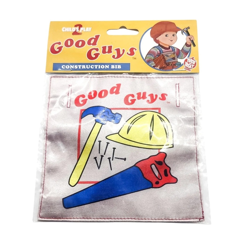Hivatalosan licencelt Good Guys előke replika, ami a teljes méretű Good Guys baba kiegészítője. Filmes referencia alapján készült, gyűjtőknek és Chucky rajongóknak látványos, autentikus darab. A baba nem része a csomagnak.