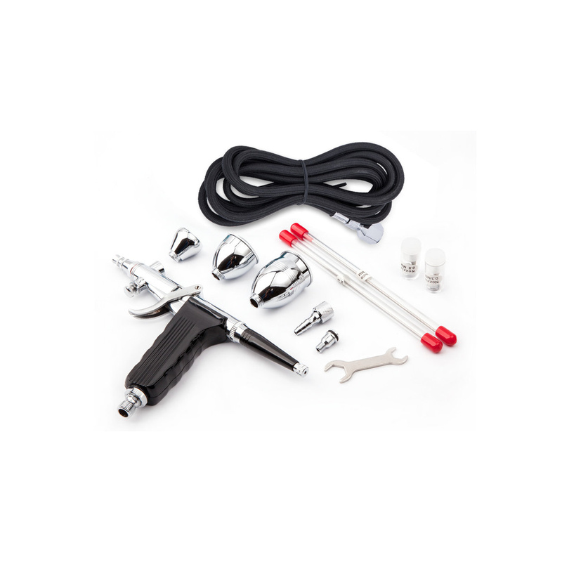 Átfogó és kifejezetten szép BD-116C airbrush, amely komplett airbrush készletként kerül szállításra.Ez a prémium airbrush szett egy igényes, formázott műanyag dobozban érkezik, széles körű tartozékkészlettel.A sok mellékelt kiegészítőnek köszönhetően a készülék többféle célra is használható.A teljes készlet három tűt és fúvókát tartalmaz (0,3/0,5/0,8 mm), a csomagban alapból a 0,5 mm-es van felszerelve.