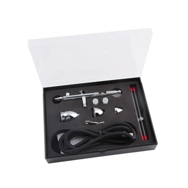 Átfogó és kifejezetten szép BD-116C airbrush, amely komplett airbrush készletként kerül szállításra.Ez a prémium airbrush szett egy igényes, formázott műanyag dobozban érkezik, széles körű tartozékkészlettel.A sok mellékelt kiegészítőnek köszönhetően a készülék többféle célra is használható.A teljes készlet három tűt és fúvókát tartalmaz (0,3/0,5/0,8 mm), a csomagban alapból a 0,5 mm-es van felszerelve.