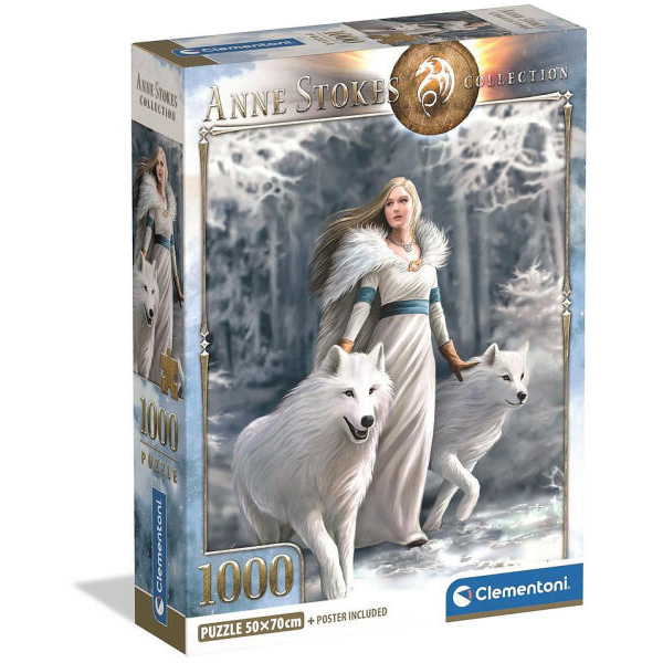 Lépj be Anne Stokes lenyűgöző fantasy világába a Tél őrzői című illusztrációval, amely most 1000 darabos puzzle formájában is elérhető a Clementoni kínálatában. A varázslatos jelenet egy jégbe fagyott erdő mélyén játszódik, ahol egy fenséges, hófehér ruhát viselő harcos nő két gyönyörű fehér farkassal vonul, mint a tél őrzői. A nyugalmat és erőt sugárzó kép tökéletes harmóniát teremt ember és természet között.