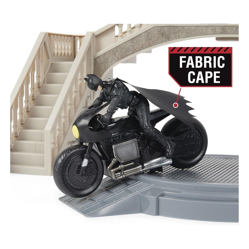 Fedezd fel Batman új rejtekhelyét ezzel a The Batman film alapján készült Batcave játékszettel. A dobozban Batman és Pingvin figura van (a figura mérete kb. 10 cm), plusz a Batcycle és 7 darab kiegészítő, hogy rögtön indulhasson a hajtóvadászat Gotham utcáin.
