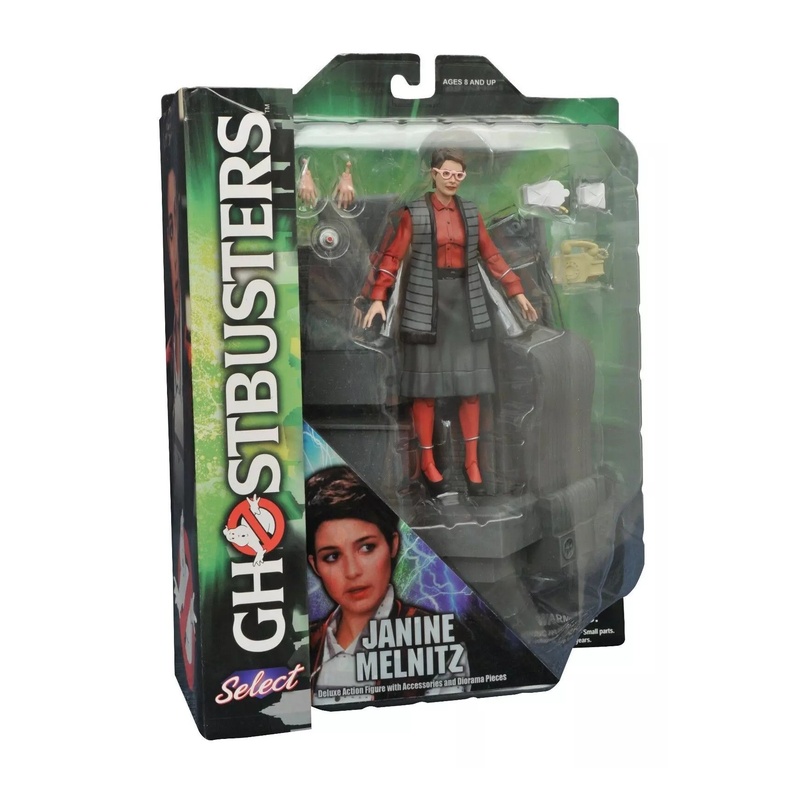 A Ghostbusters Select sorozatból érkezik Janine Melnitz, a Szellemirtók ikonikus recepciósa, a jellegzetes megjelenésével. A kb. 18 cm-es akciófigura részletes kidolgozású és jól pózolható, a csomagban pedig több apró kiegészítőt is kapsz hozzá, például telefont, riasztógombot és elviteles dobozokat. Emellett jár hozzá egy dioráma-elem is, amit a sorozat többi darabjával együtt össze lehet állítani egy nagyobb közös jelenetté.