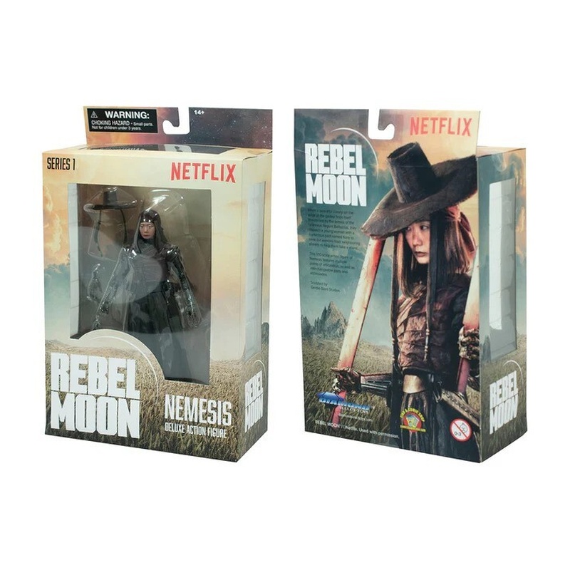 A Zack Snyder-féle Rebel Moon világából érkezik Nemesis ebben a részletgazdag, kb. 18 cm-es akciófigura kiadásban. Jól mozgatható, így vitrinben is könnyű látványos pózba rakni, és a dobozban ott vannak a karakterhez passzoló cuccok is, például kardok és levehető kalap. Gyűjtőknek külön plusz, hogy ablakos dobozban jön, így bontatlanul is szépen mutat.