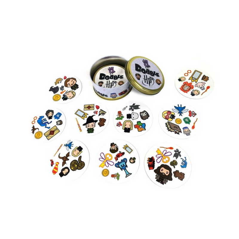 A gyorsaság és felismerés játéka igazi rajongóknak! A Dobble Harry Potter pörgős, zsebre vágható kártyajáték 5-féle játékváltozattal. A kártyákon 8-8 különböző képecske látható a Harry Potter világából, és bármelyik két kártyán mindig van egy ugyanolyan belőlük. A játékosok feladata, hogy a többieknél gyorsabban megtalálják a közös képeket. A koncentrációt és a reflexeket fejlesztő társasjáték.