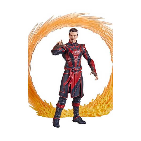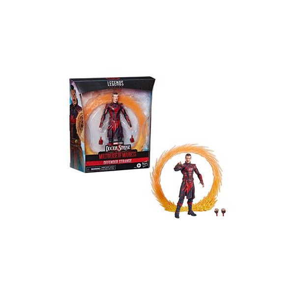 Ez a 6 hüvelykes Legends Series Defender Strange figura a Marvel Cinematic Universe filmek által inspirált fekete-piros dekorációval, alternatív kézi kiegészítőkkel és Sling Ring portál kiegészítővel rendelkezik.