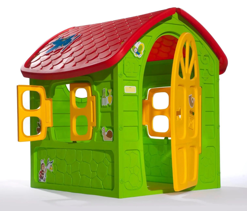 A Dohány Kerti házikó, játszóház egy bájos és tágas kerti játék, amely saját kis világot teremt a gyerekek számára. A színes, barátságos kialakítás ösztönzi a kreatív szerepjátékot, miközben a kicsik saját otthonukban játszhatnak, vendégeket fogadhatnak vagy akár kalandos történeteket találhatnak ki. A stabil, időjárásálló műanyag szerkezet hosszú távon is megbízható használatot biztosít kültéren. Az ajtóval és ablakokkal ellátott kialakítás valósághű élményt nyújt, miközben megfelelő szellőzést és biztonságos játékteret garantál.