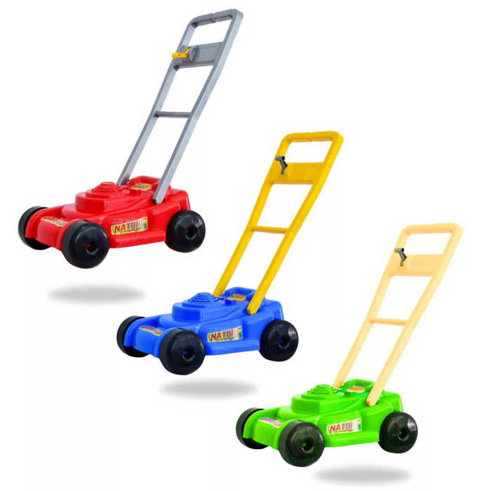 A fűnyírós játékot imádják a kis lurkók, ráadásul még a kerekekbe szerelt műanyag nyelv ad egy kerepelő hangot, ahogy a gyermek tolja a fűnyírót, ezzel imitálva a fűnyíró igazi hangját.