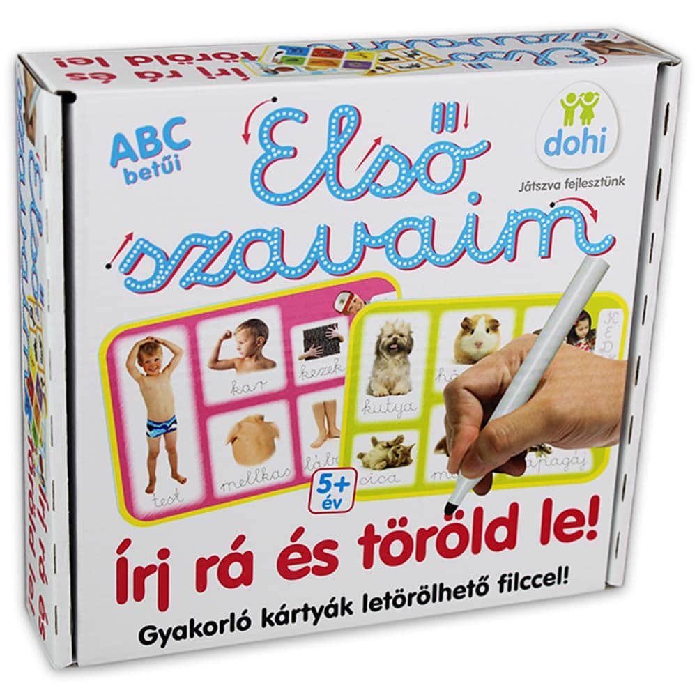 A gyerekek gyakorolhatják a szavak írását. Ha mégis elrontják, szivaccsal letörölhetik, és újra próbálhatják. Sokkal több, mint szórakozás, készülj az iskolára! �rásgyakorlatok 16 db kétoldalas táblán. A mintabetűket megfigyelve, a szaggatott vonalból álló szavak átrajzolása után a gyermek önállóan is képe lesz írni.