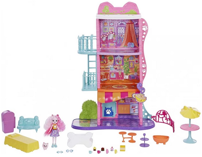 Enchantimals Városi toronyház egy nagy, többemeletes játékkészlet a Mattel Enchantimals sorozatból, ahol a városi élet mindennapjai elevenednek meg a gyerekek előtt. A háromszintes városi toronyházban 6 különböző játéktér van (például kávézó terasszal, nappali-konyha és tetőterasz medencével), így többféle történetet játszhatnak el a figurákkal. A szett több mint 15 kiegészítőt tartalmaz, köztük a Palmer Pomeranian babát és Pommy kiskutyát, és 4 éves kortól ajánlott kreatív szerepjátékhoz.