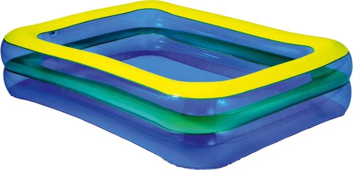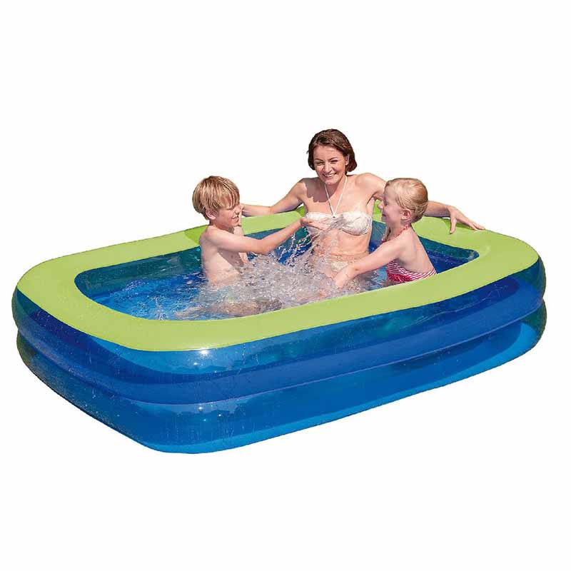 Ez a felfújható családi medence 200 x 150 x 50 cm egy tágas és kényelmes pancsolóhely a meleg nyári napokra, amely ideális kertbe vagy teraszra, hiszen több gyermek vagy akár felnőttek számára is alkalmas; a stabil, több légkamrás kialakítás egyszerű felfújhatóságot biztosít, miközben kényelmes és biztonságos fürdési élményt nyújt a család minden tagjának. Méret: 200 x 150 x 50 cm, amely nagyméretű, sekély vízteret biztosít a pancsoláshoz. Anyag: erős és tartós PVC/vinil, amely ellenáll a rendszeres kinti használatnak. Korosztály: 3 éves kortól ajánlott, ideális gyerekeknek és családi pancsoláshoz egyaránt.