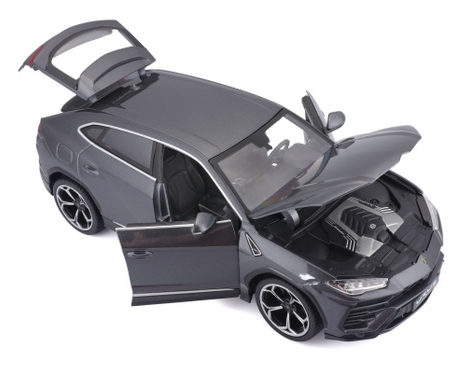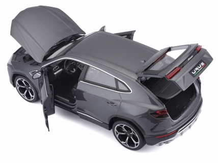 Bburago Lamborghini Urus 1:18 részletgazdag 1:18 méretarányú fém modellautó híres olasz szupersport-SUV-ról, a Lamborghini Urusról. A modell nyitható ajtókkal, motorháztetővel és csomagtartóval rendelkezik, így még élethűbb megjelenést kínál, és a belső tér, valamint a motor részletei is kidolgozottak. A kerekek kormányzással mozoghatók, ami fejleszti a játékélményt vagy gyűjthető darabbá teszi a polcon is. Mérete kb. 25 cm hosszú a valós járműhöz képest 1:18 arányban készült modellben. Ajánlott 3 éves kortól és ideális választás autó- és modellrajongóknak egyaránt.