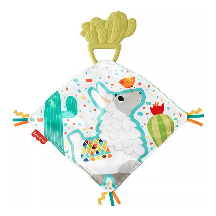 Ez a lámás és kaktuszos rongyi remek választás a baba számára, hiszen mintája segít fejleszteni kisbabád látását, köszönhetően kontrasztos színeinek. Ezen kívül nyálkendőként is használható, a rajta lévő rojtok pedig a tapintást és a kéz motorikus mozgását is fejlesztik. A rongyi egyik sarkában egy kaktuszos rágóka is megtalálható, mely nagy segítséget jelenthet a babáknak, hiszen felülete segít az íny masszírozásában, mely a fogzás időszakában és előtte is segítséget nyújt.