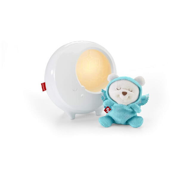 Teremtsen megnyugtató és kellemes hangulatot a Star Projector szett nyugtató és puha mackójával. Számos funkcióval rendelkezik, többek között csillagfény-vetítéssel, színváltó éjszakai világítással és különféle hangokkal és zenével, így könnyedén megtalálhatja azt a kombinációt, amely a legjobban megnyugtatja kisgyermekét és felkészíti az alvásra. Az aranyos, hordozható plüssállat tökéletes ölelhető játék kisgyermekének.