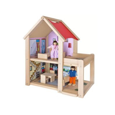 A több helyiségből álló babaház teljesen berendezett, így a játék azonnal elkezdhető. A készlet bútorokat és figurákat is tartalmaz, így a gyerekek könnyedén berendezhetik a házat és életre kelthetik saját kis világukat. A természetes fa anyag és a gondos kidolgozás hosszú távú, biztonságos játékélményt biztosít.
