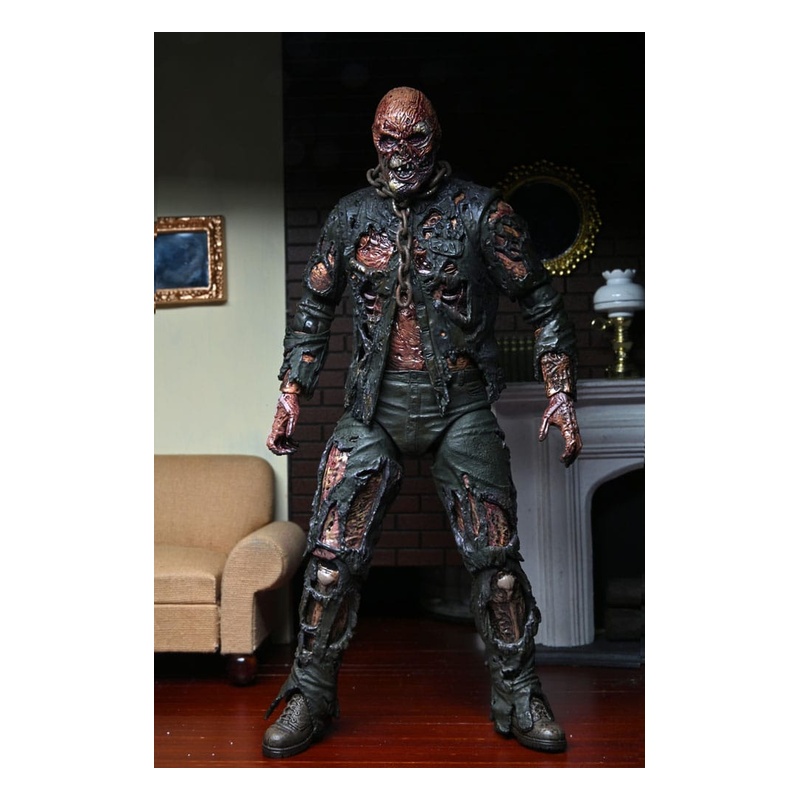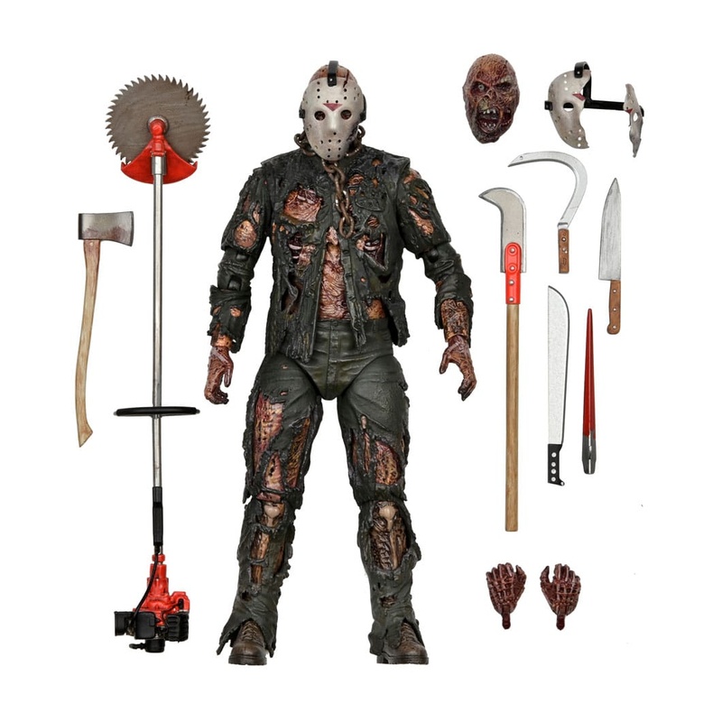 A Péntek 13. sorozatból érkezik a Jason-figura etalon gyűjtői kiadása: a karakter a 7. részben látott megjelenésével tér vissza Ultimate változatban. A kb. 18 cm-es, teljesen mozgatható akciófigura két cserélhető fejet tartalmaz, és rengeteg kiegészítővel van tele.