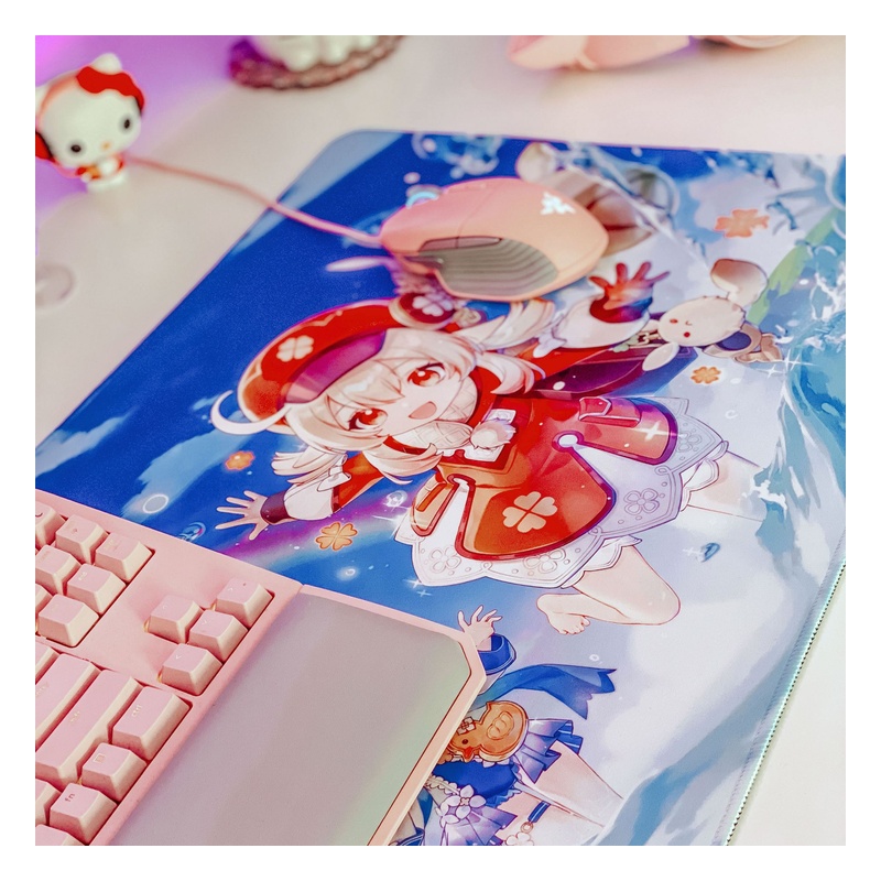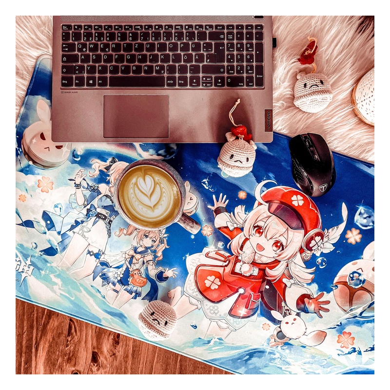Ez a Genshin Impact - Midsummer Island Adventure mintás XL asztali alátét nagy felületet ad, így kényelmesen elfér rajta az egér, és akár a billentyűzet is. A teteje sima textil felület, amin jól fut az egér, az alja pedig csúszásgátlós, hogy használat közben a helyén maradjon. Méret: 70 x 40 cm, gamer asztalra és munkához is ideális.